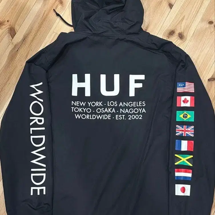HUF 나일론 아노락 후드티 WORLDWIDE 블랙