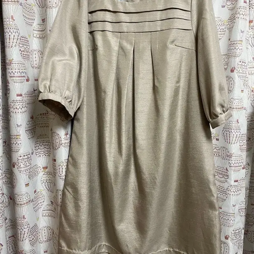 베이지 반팔 무릎 기장 원피스 M 사이즈