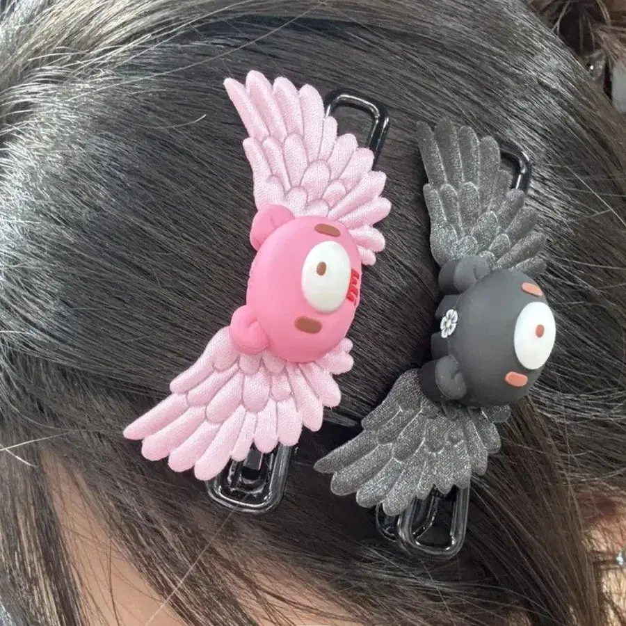 GLOOMY 헤어 클립 블랙 핑크 그루미 클립 깃털 헤어핀