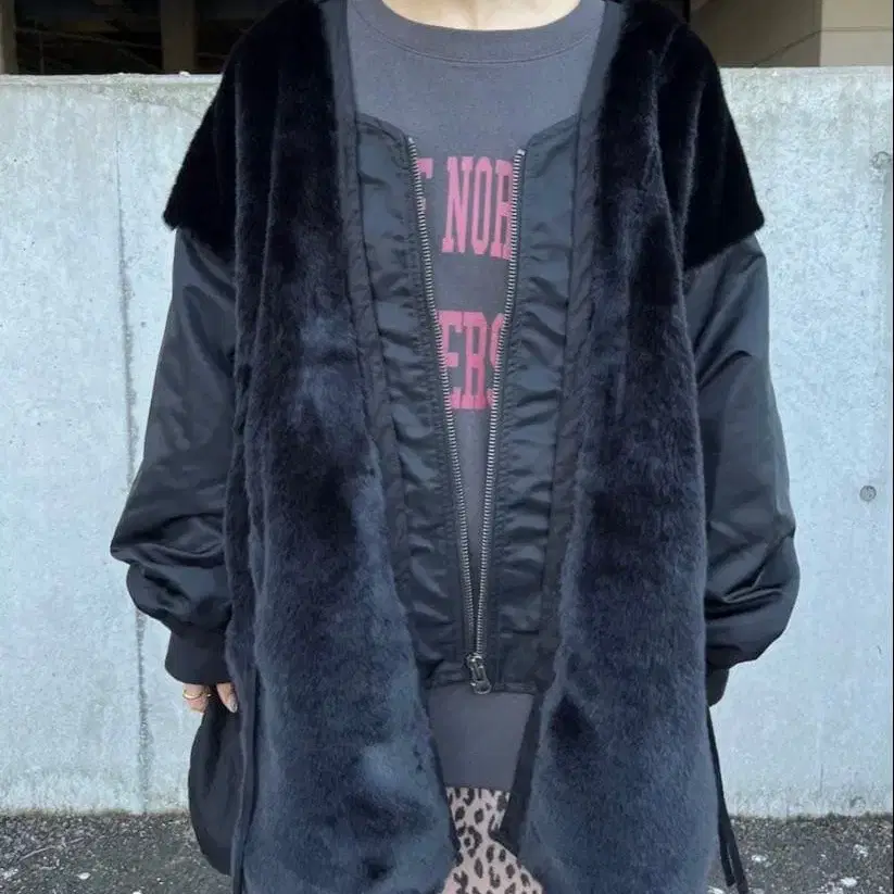 • TNA 퍼 후드 캐주얼 자켓 블랙