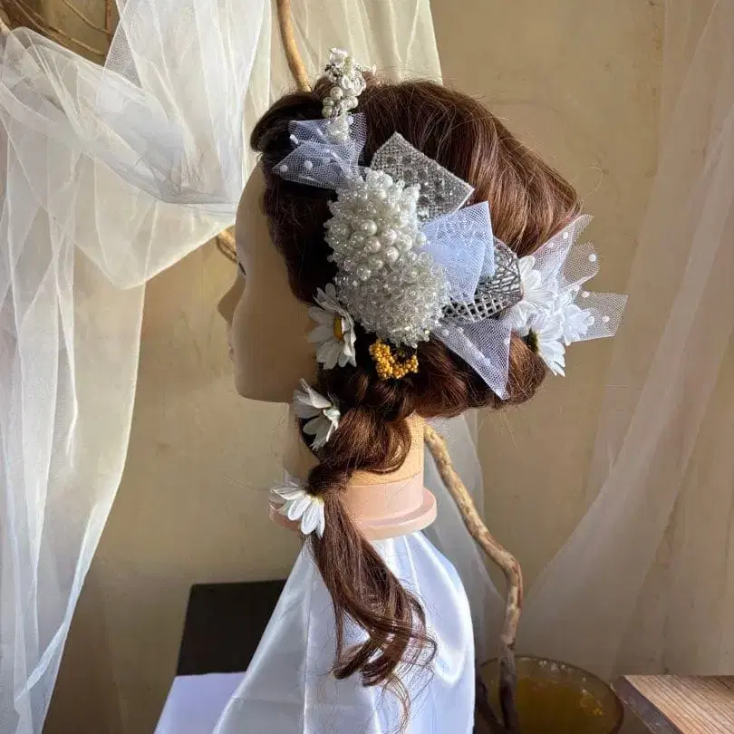 머리띠 포함 일본 의류 머리 장식 화이트 꽃 리본