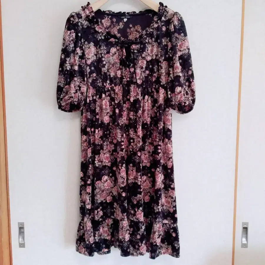 레스트로즈의 꽃무늬 벨로아 원피스 (블랙 x 핑크) 입니다.