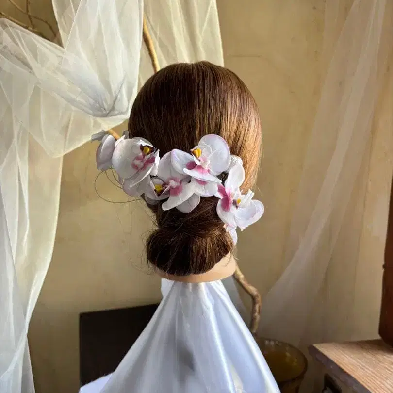 성인식에도 화이트 난초 꽃 머리 장식 일본 의류용