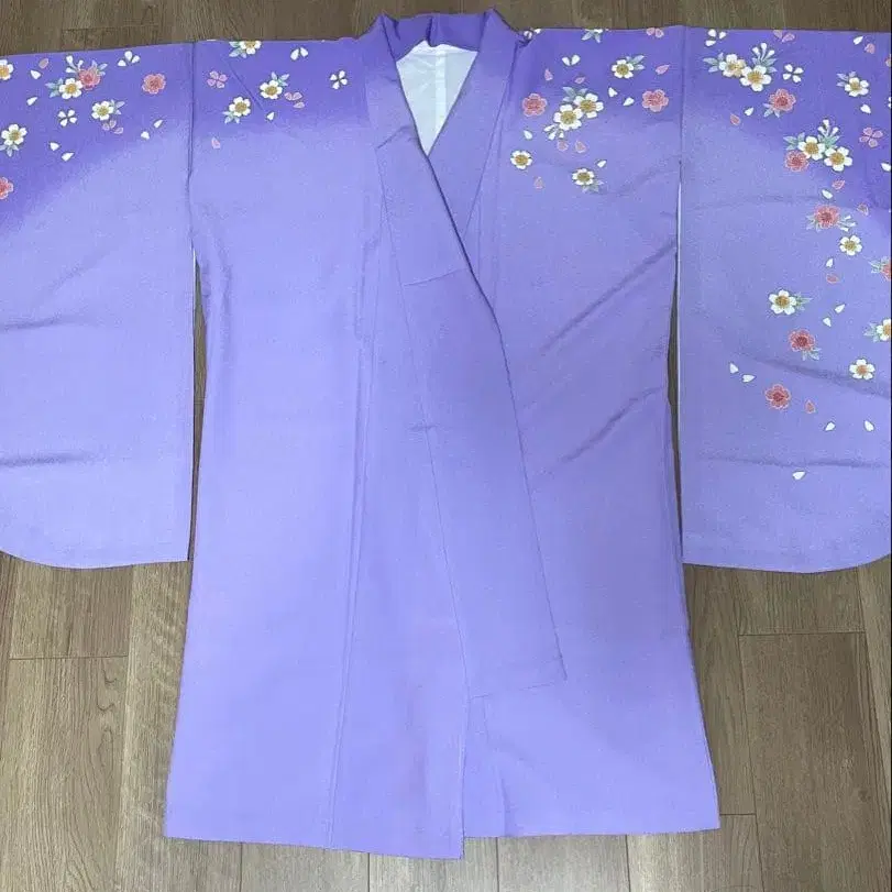 졸업식용 니샤쿠소데 기모노 보라색 꽃무늬 겉옷과 빨간색 하카마 세트