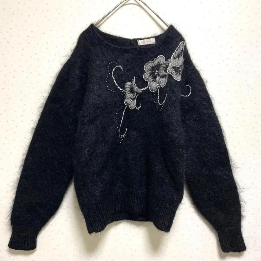 레트로 빈티지 80s 니트 스웨터 블랙 플러피 모헤어 울