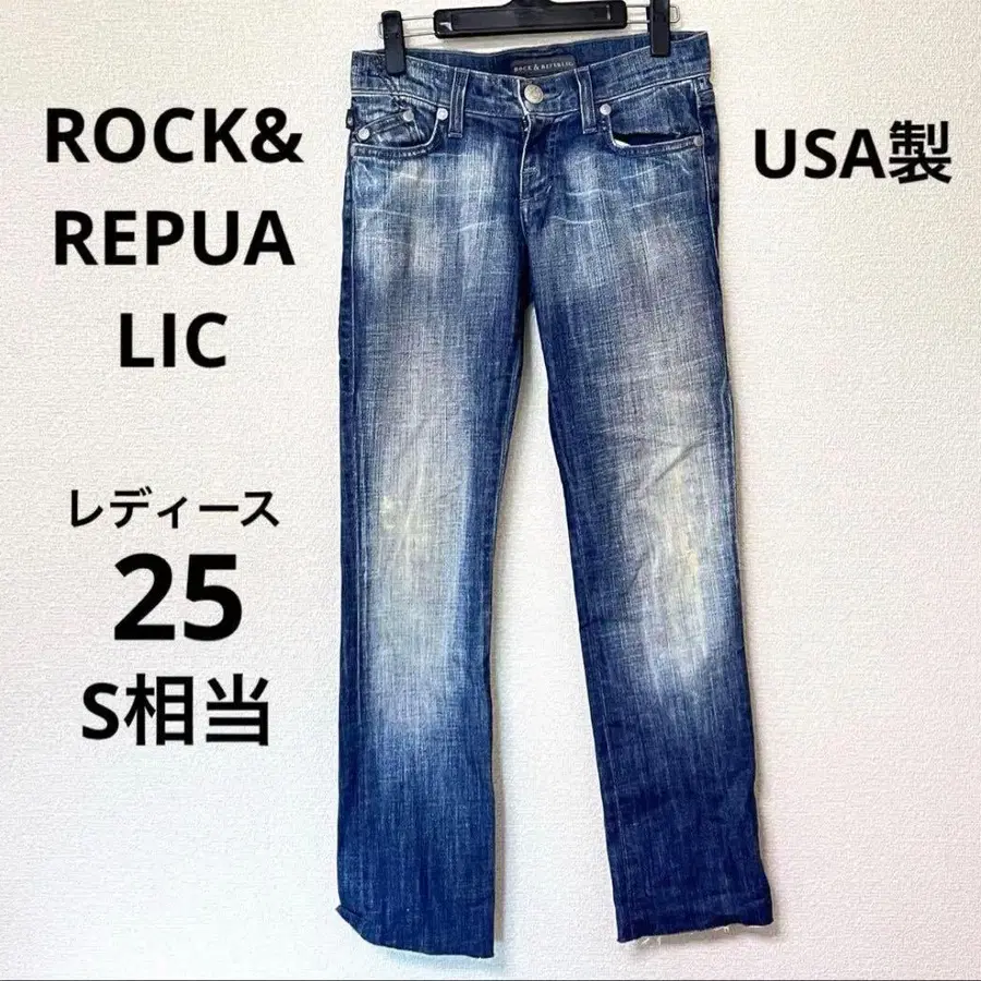ROCK & REPUBLIC의 스트레이트 데님, 사이즈 25, 다크 블루 색감이 특징입니다.
