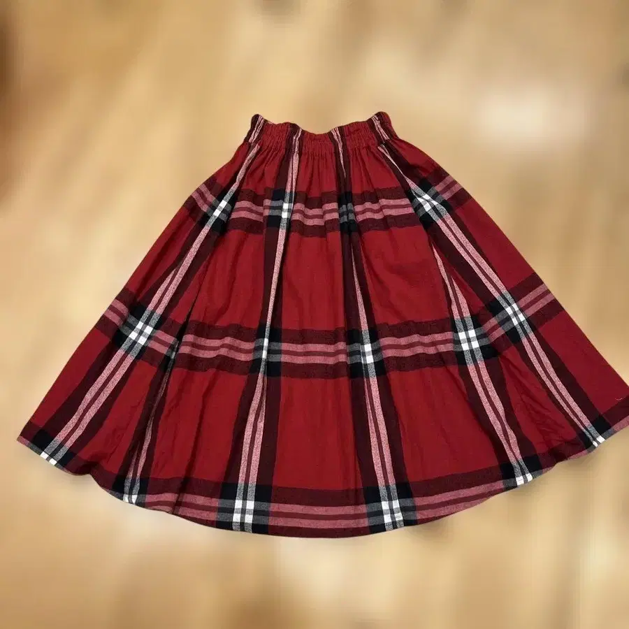 BEAMS BOY 레드 체크 플레어 스커트