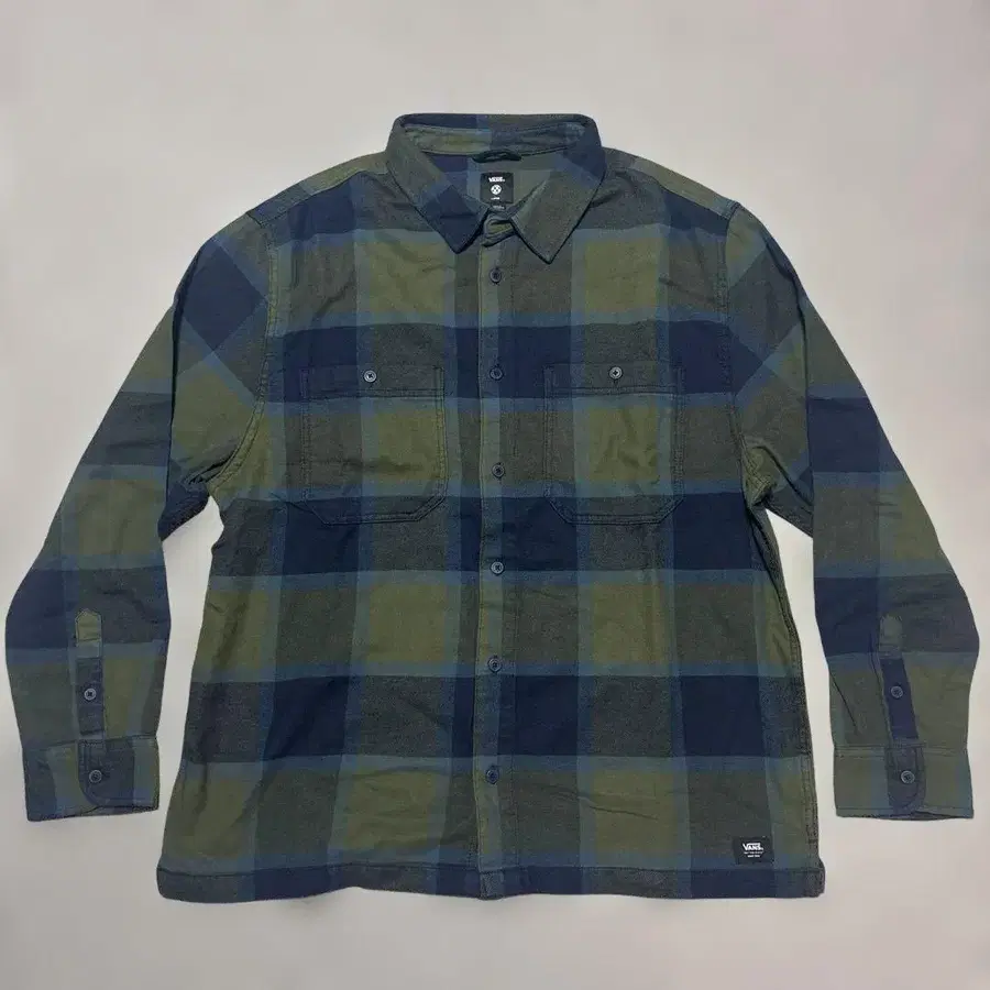VANS 긴팔 플란넬 셔츠 올리브 그린 x 네이비