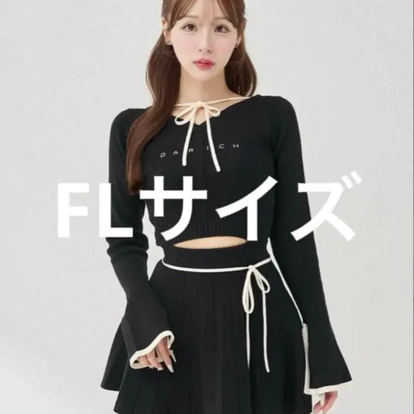 Darich 허리 오픈 리본 디자인 니트 미니 원피스 BLK FL