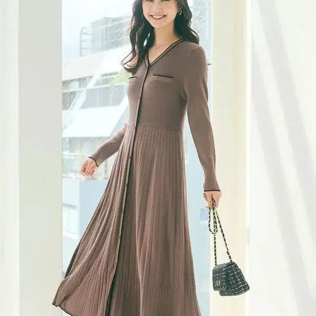 애니시스 [세탁 가능] 바이컬러 디자인 니트 원피스