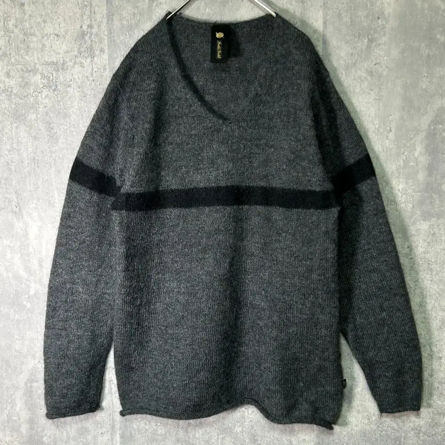 고급 모헤어 니트 V넥 아카이브 그레이 사이드 은 버튼