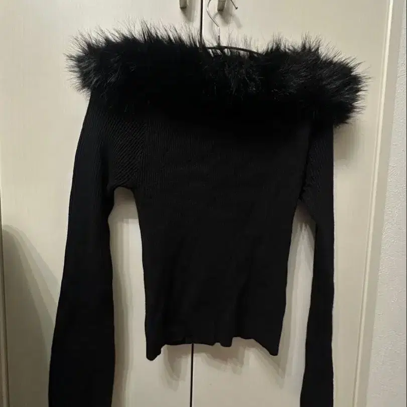 SPRAY PA 퍼 포함 오프숄더 스웨터