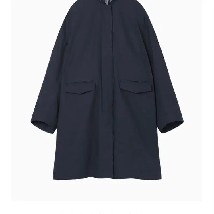코드 자수 디테일 코튼 오버사이즈 코트 - 네이비