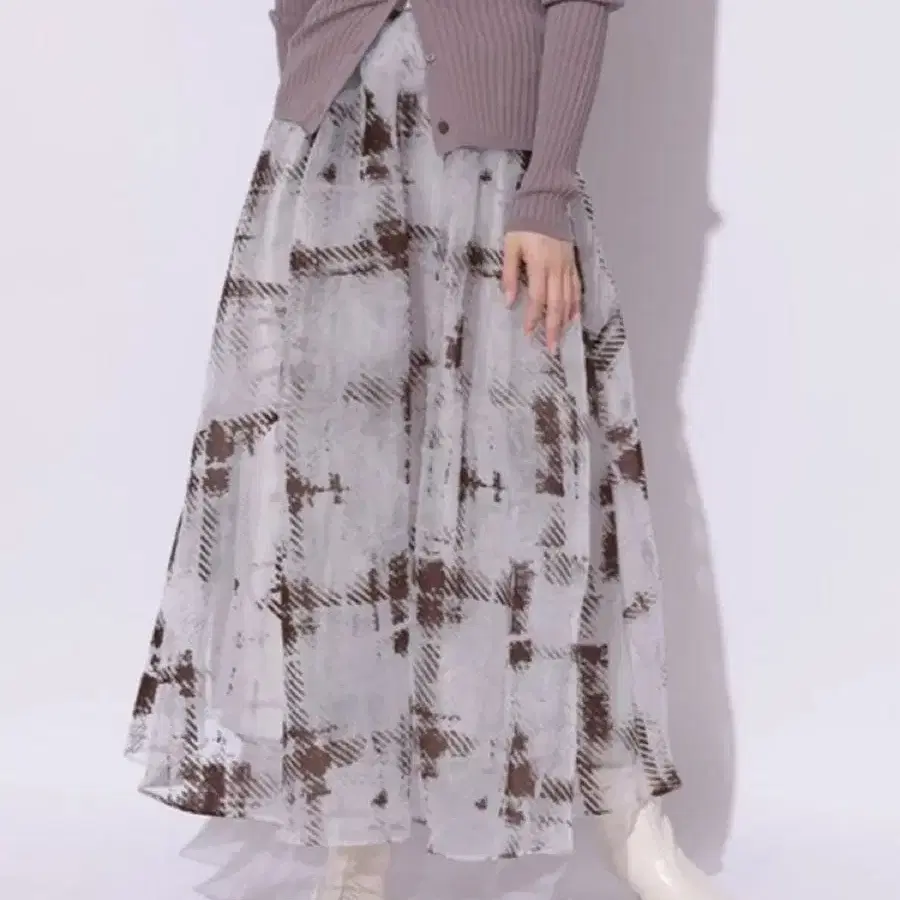 마이 스트라다 그라데 체크 플로키 스커트 핑크 베이지 34