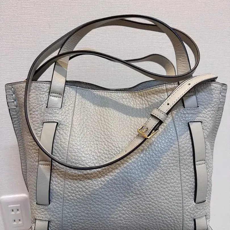 사자비 2way 토트백 핸드백 주름 가죽 그레이