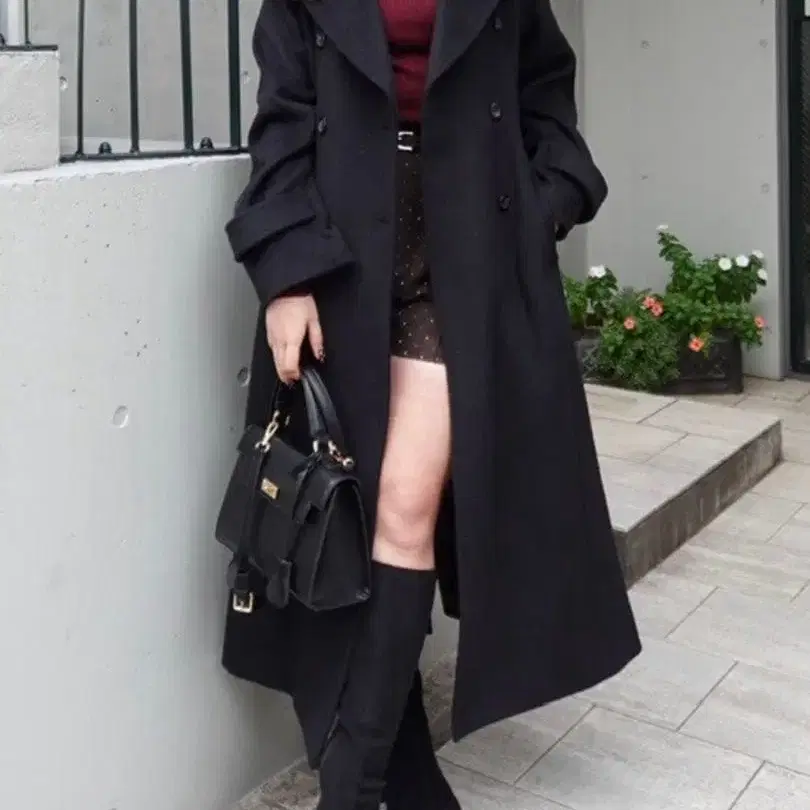 [ 즉시 구매 OK ] rienda 더블 컬러 쉐이프 체스터 코트 블랙