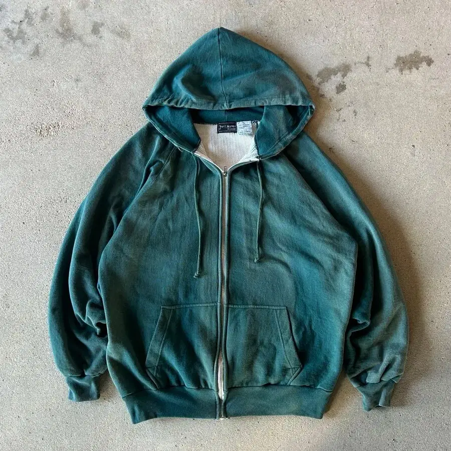 80s 써멀 더블 페이스 지퍼 후드티 루마니아산 페이드