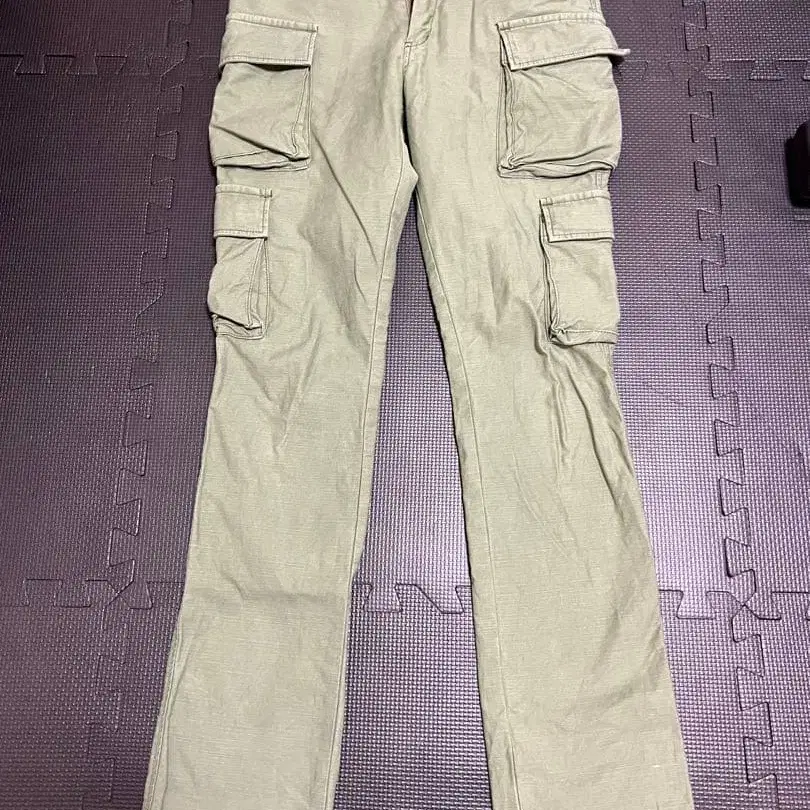 카키 색상으로 코디하기 쉬우며, 카고 팬츠 특유의 볼륨감을 억제한 슬림하고 깔끔한 실루엣이 특징입니다.