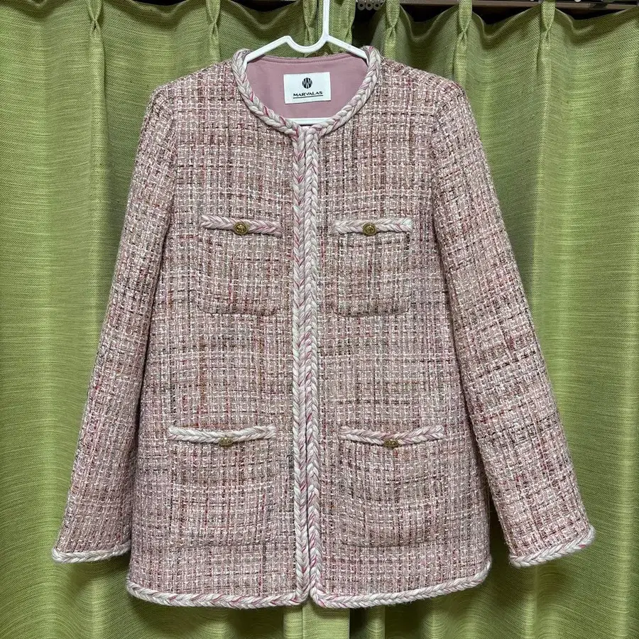 MARVALAS 트위드 노카라 자켓 S 사이즈 핑크