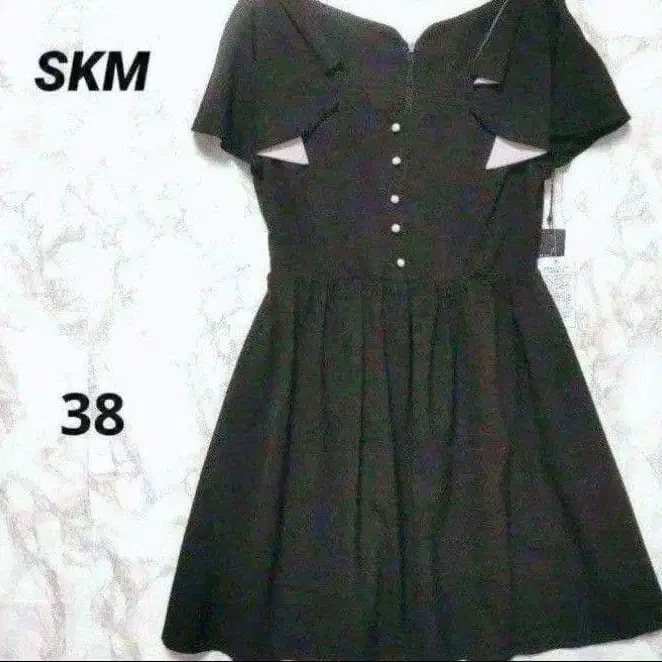 [ 미사용 새상품 ] SKM 블랙 원피스 38 컷 디자인 플리츠 모드