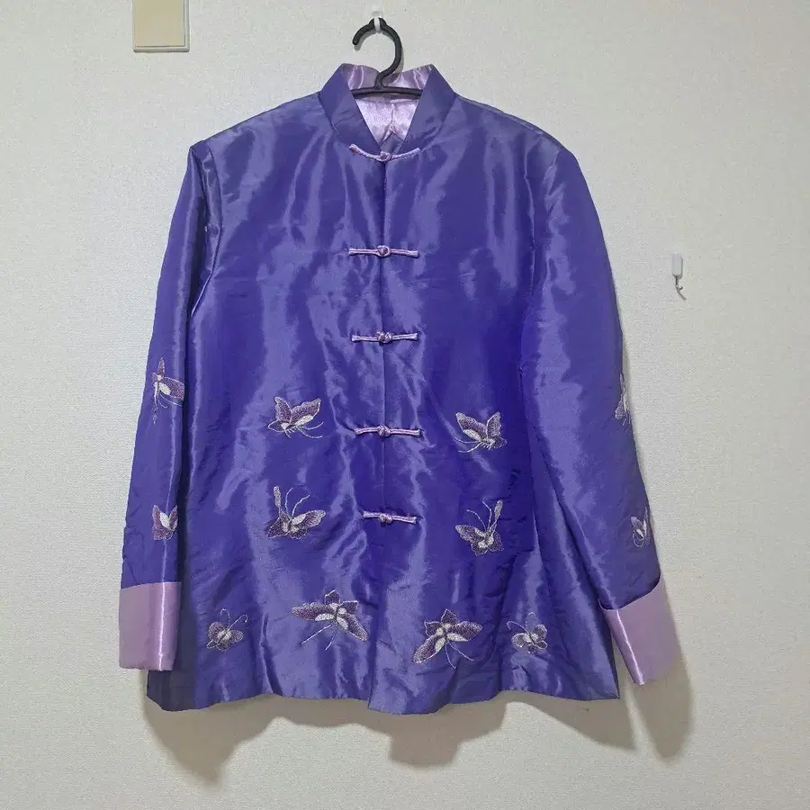[택 포함 새상품] 차이나 드레스풍 자켓 아우터 나비 자수 보라색 새틴