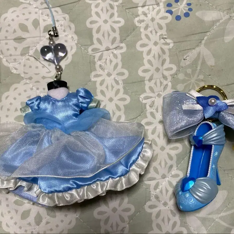 스카이블루 드레스 & 신데렐라 신발 모양 키링 2세트