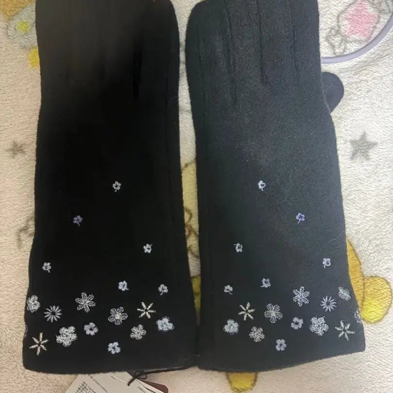 로라 애슐리 블랙 꽃무늬 자수 플리스 장갑