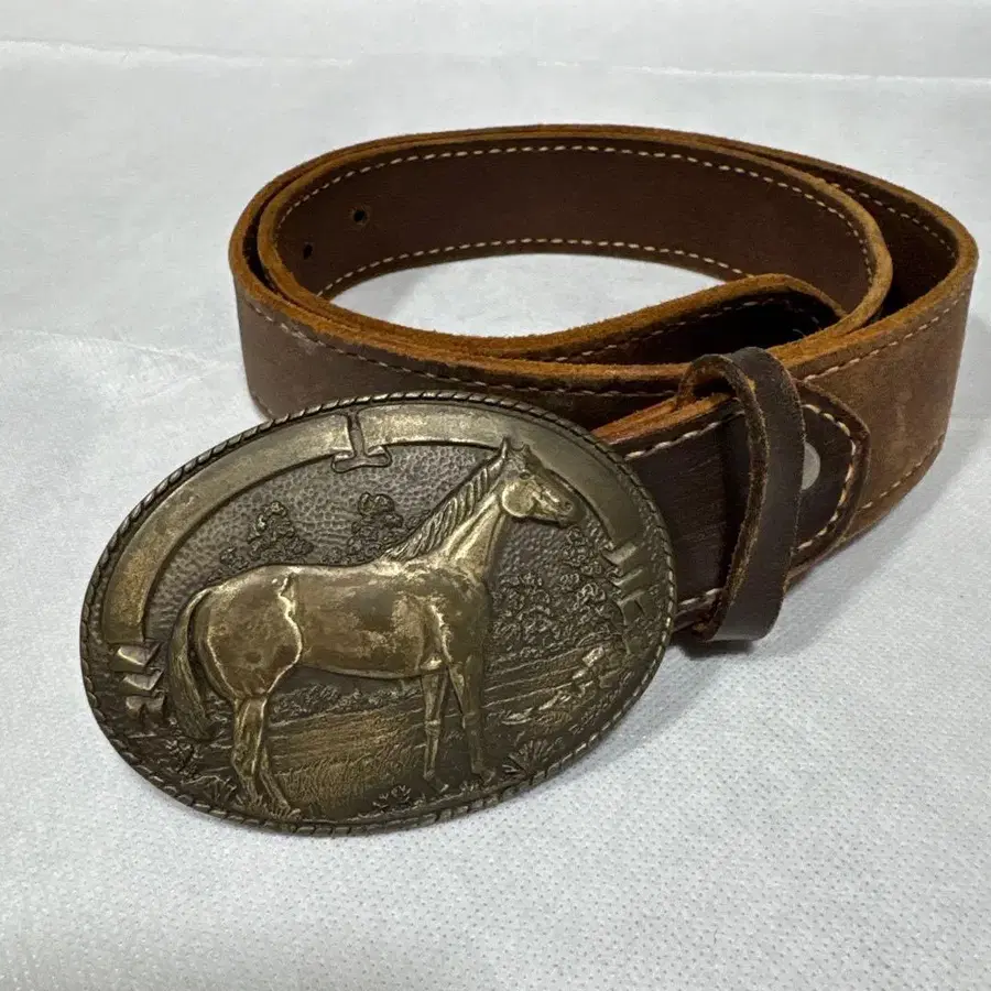 Tony Lama 말 조각 버클 웨스턴 벨트 브라운 빈티지