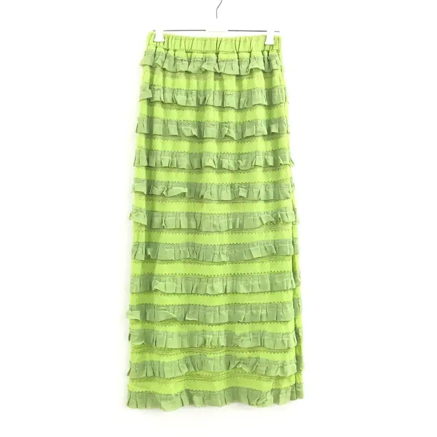 밝은 그린의 프릴 롱 스커트, 경량으로 쾌적한 착용감.