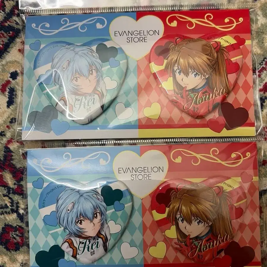 신세기 에반게리온 14주년 기념 페어 하트형 캔뱃지 아스카 아야나미 레이