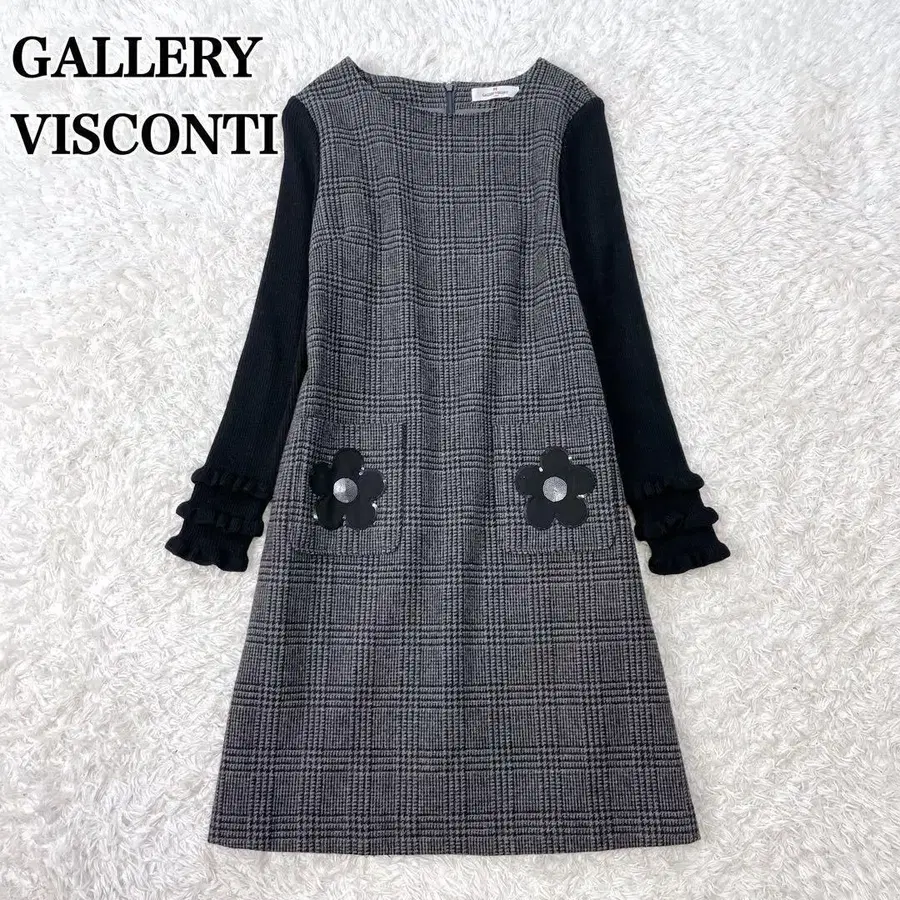 새상품급 갤러리 비스콘티 절개 원피스 체크 트위드 꽃 블랙