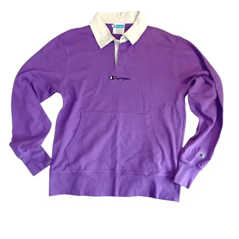 자동 번역되었어요. 원문보기퍼플 색상의 코튼 폴로 셔츠, 화이트 색상의 옷깃과 Champion 로고 포함.