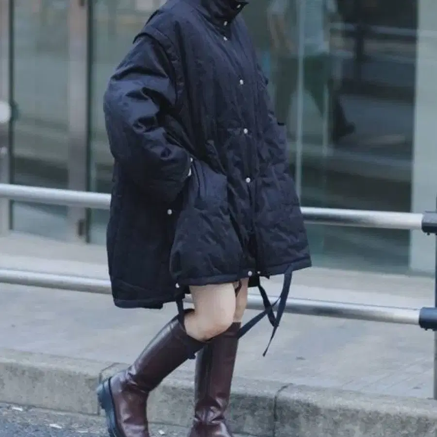 Kastane 퀼팅 리버서블 미들 코트 블랙