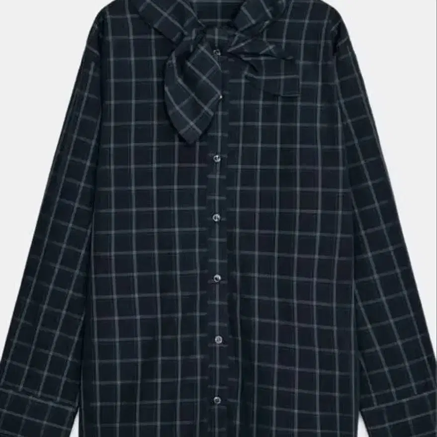 ZARA 네이비 체크 무늬 리본 포함 셔츠