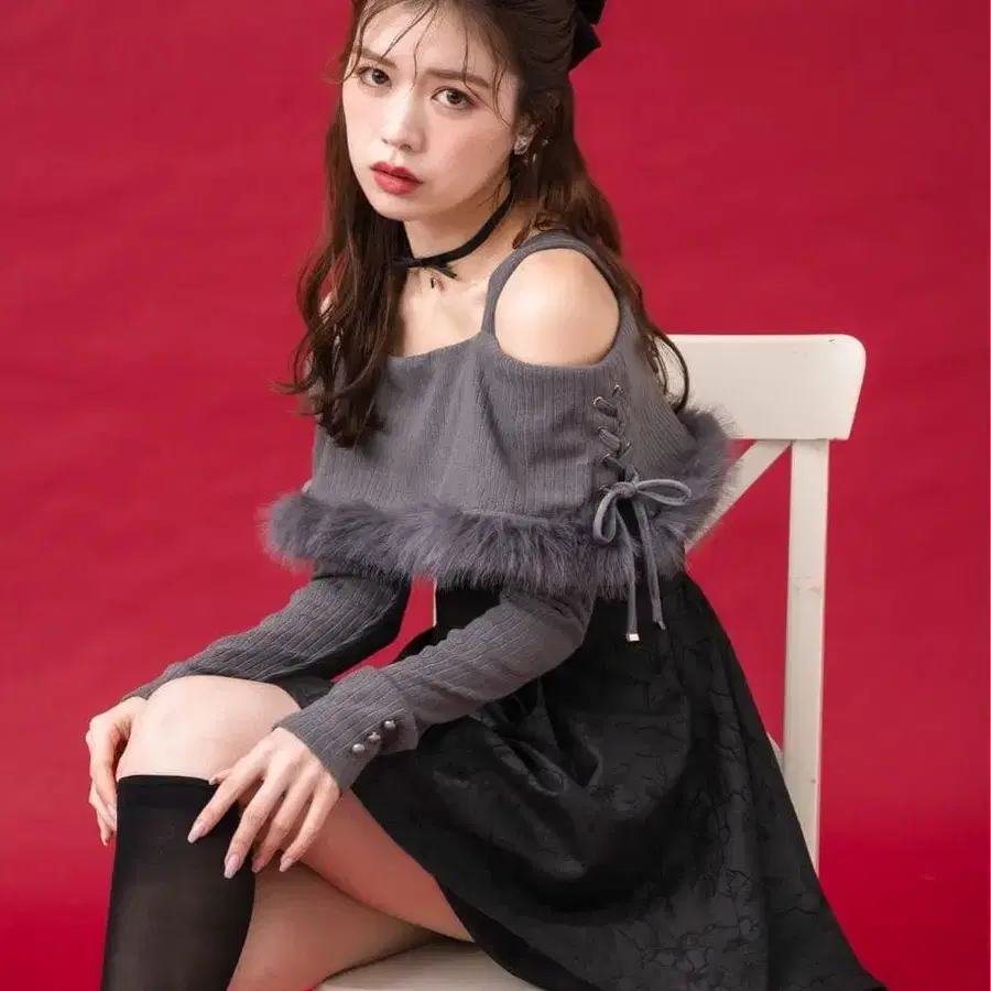 couture BY ROJITA 오프숄더 골지 믹스 원피스