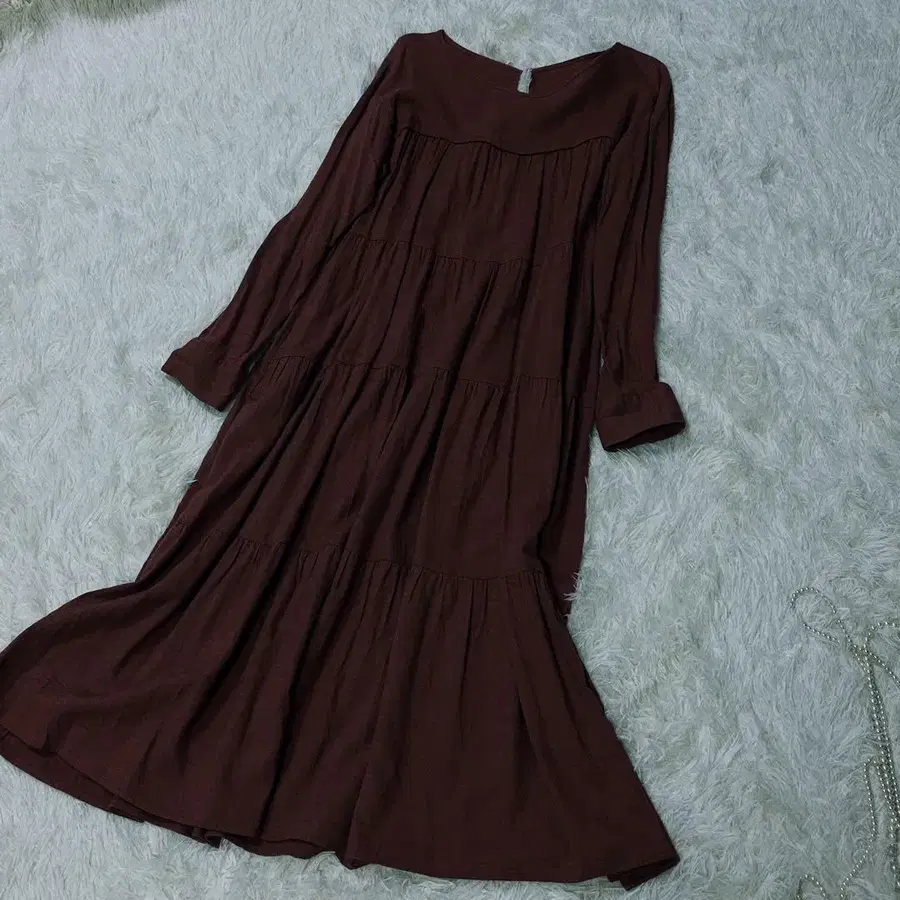 브라운 보트넥 긴팔 티어드 원피스 프리 사이즈