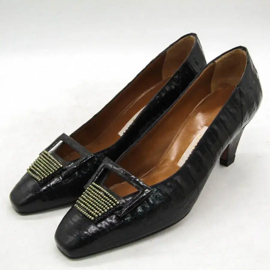 BELRAMI 크로커다일풍 펌프스 블랙 37사이즈 천연 가죽 이탈리아제