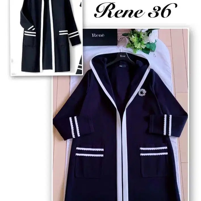 Rene 바이컬러 후디 가디건 36 새상품급 foxey