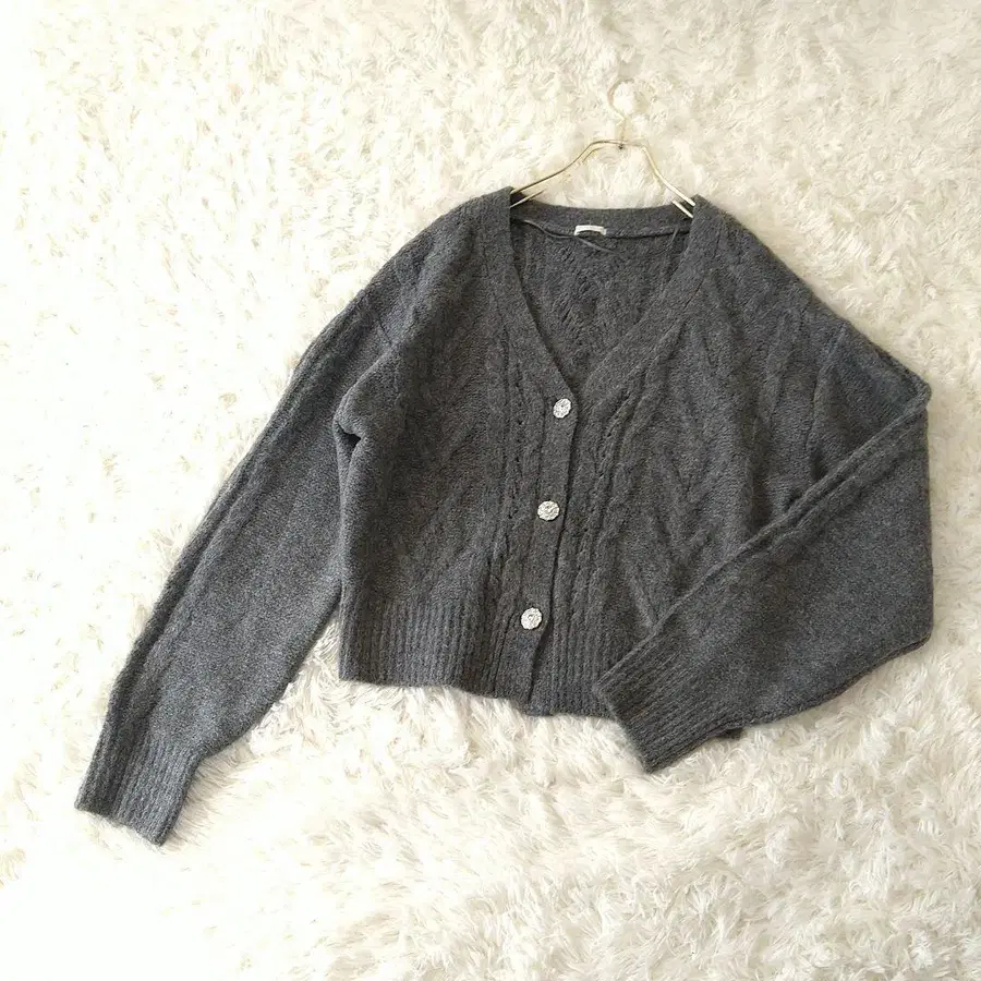 ☑ 상품: GU의 그레이 V넥 가디건, 버튼 포함, 크롭 기장으로 스타일리시합니다.