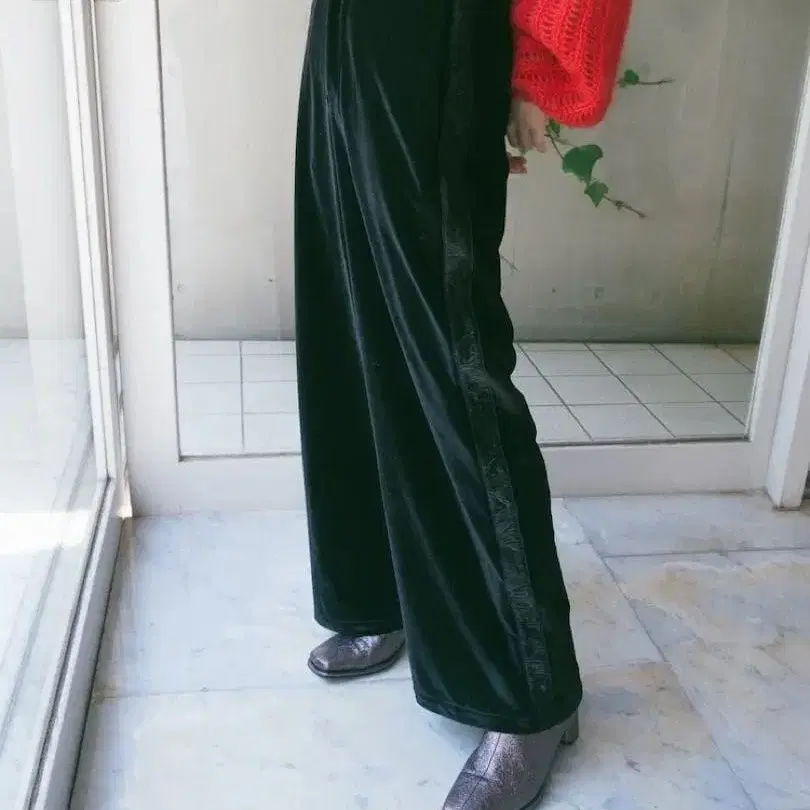 사하라 사이드 개더 라인 벨루어 팬츠