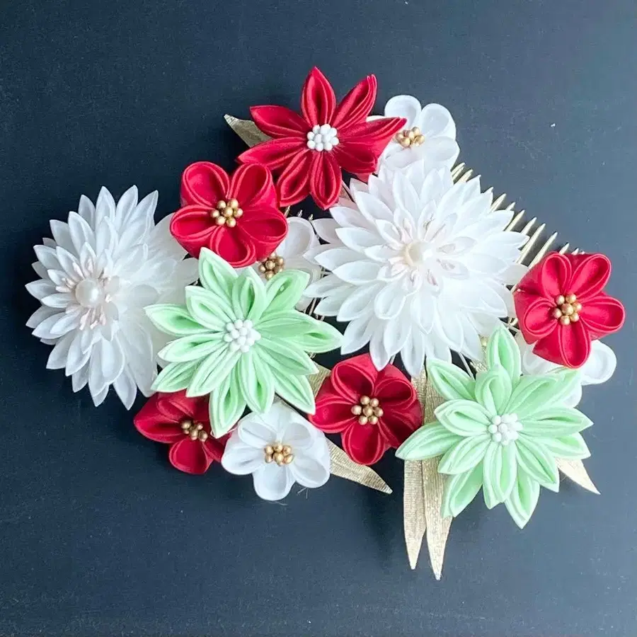 쓰마미자이쿠 성인식 머리 장식 빨간색