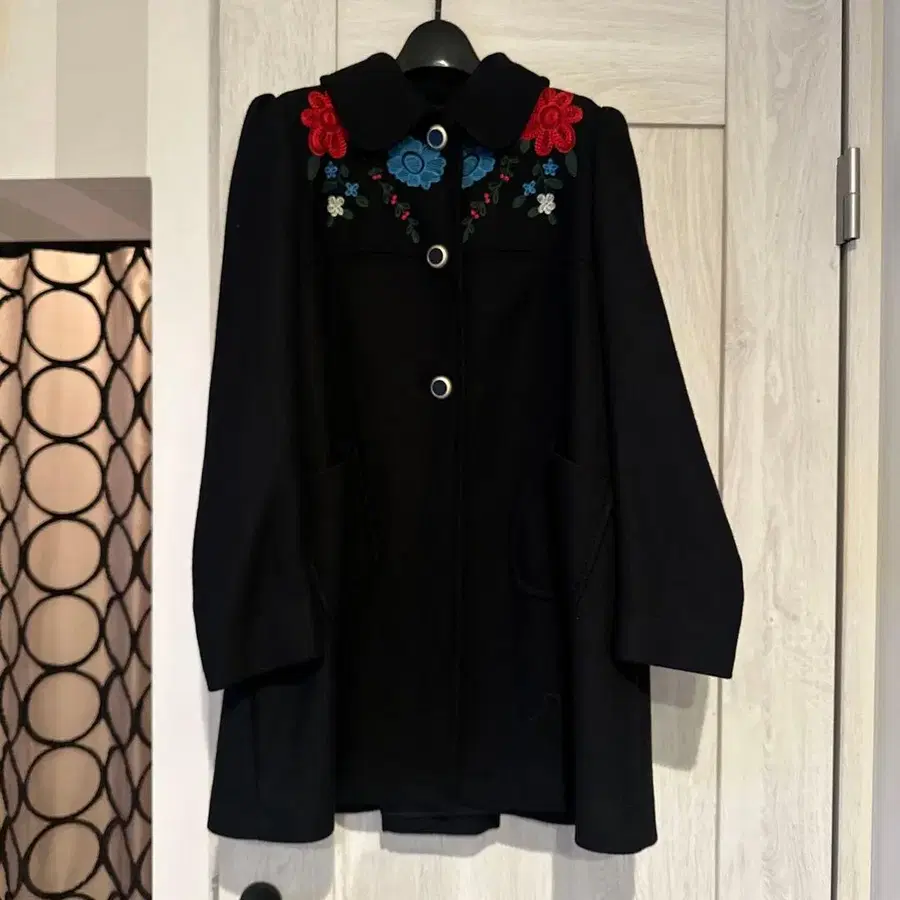 ZARA 블랙 꽃무늬 자수 코트