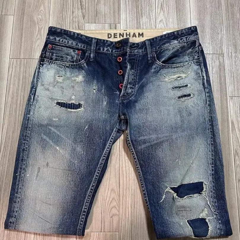 DENHAM 데미지 가공 슬림핏 데님