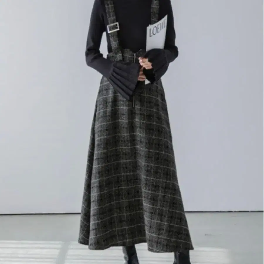 SUGAR BISKET 오버롤 스커트 체크 무늬