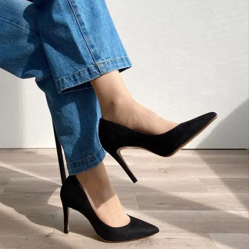 스틸레토 스웨이드 펌프스 (9.0cm 힐)