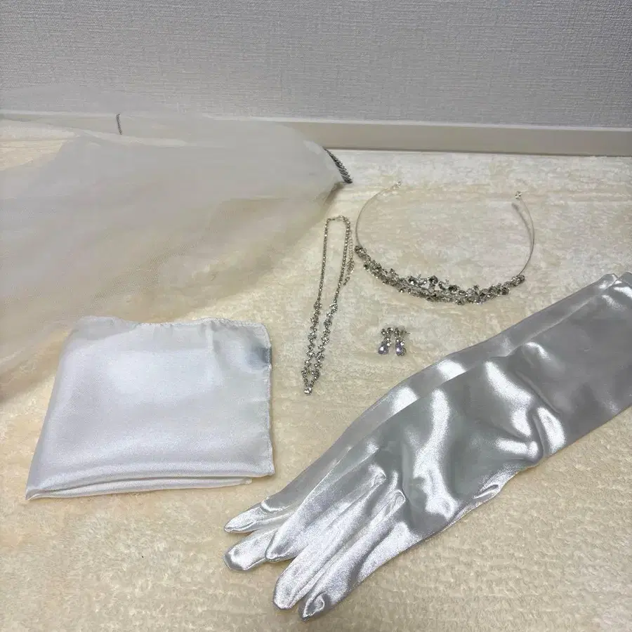 결혼식 브라이덜 잡화 6세트 베일 티아라 귀걸이 웨딩 그로브