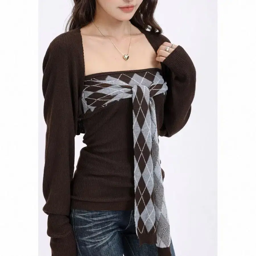 아가일 탱크탑 볼레로 브라운 S