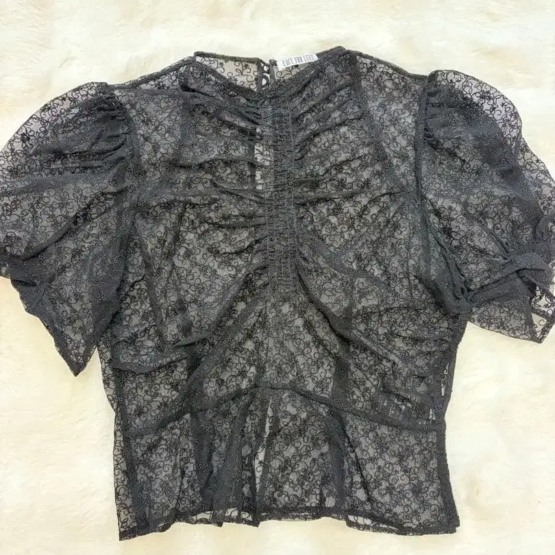 editforlulu 블랙 레이스 퍼프 슬리브 상의