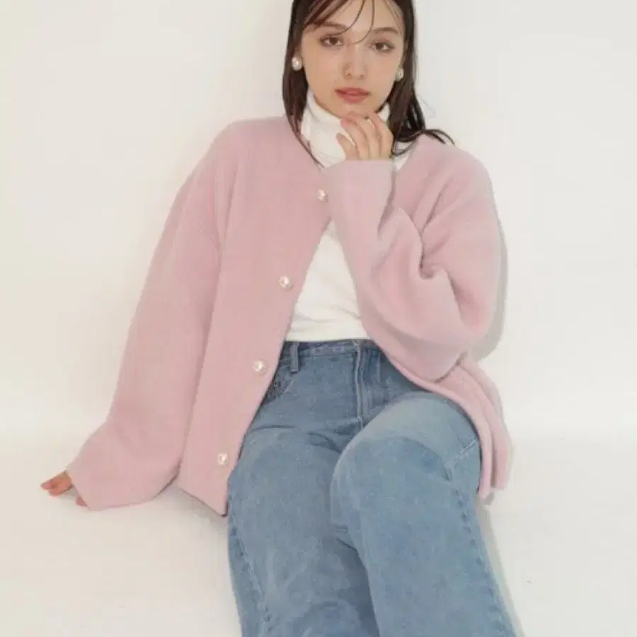 대형 펄 버튼이 화려한 악센트를 더하는 니트 자켓. 둥근 코쿤 실루엣이 여성스러운 엘레강트한 인상을 연출합니다. 여유 있는 실루엣으로 레이어드도 편하게 할 수 있습니다. 포근하고 부드러운 니트 소재로 따뜻하게 착용할 수 있으며, 환절기나 쌀쌀한 날에도 활약해 줄 아이템입니다.