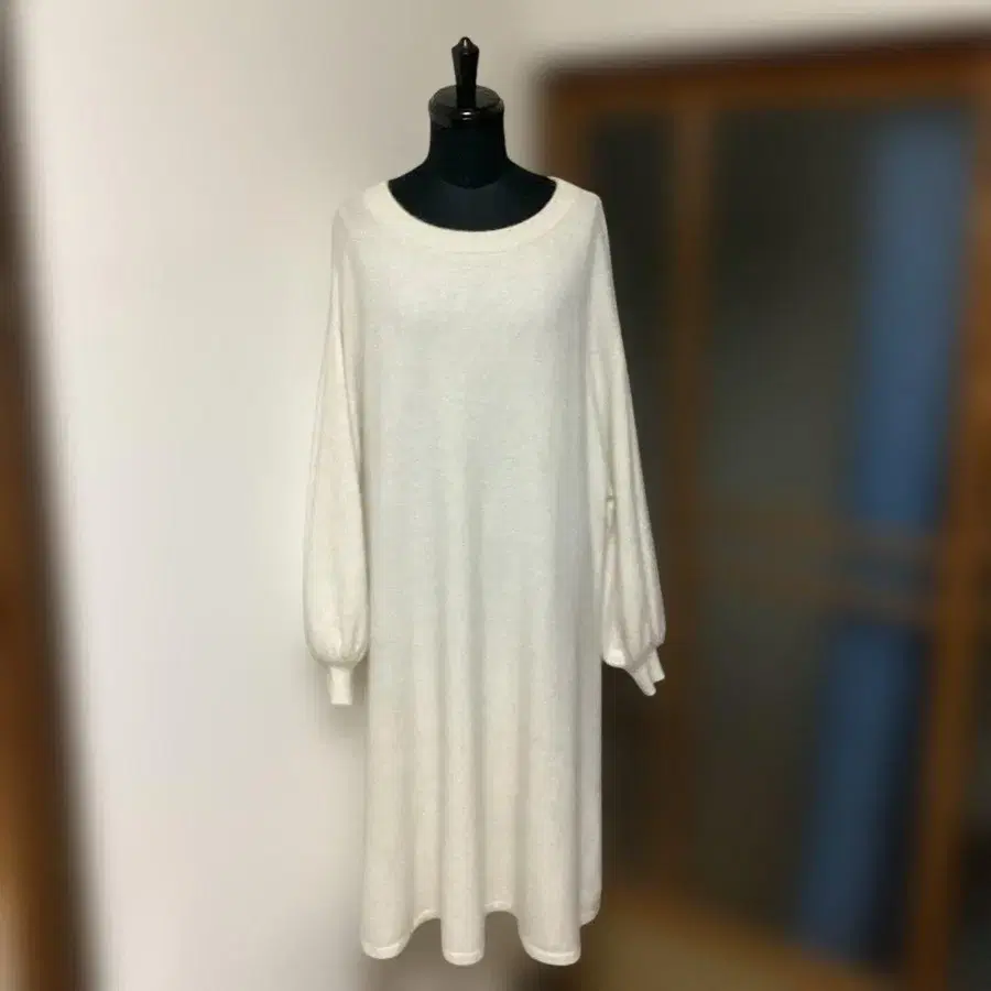 화이트 니트 롱 원피스 긴팔 A라인 SNIDEL